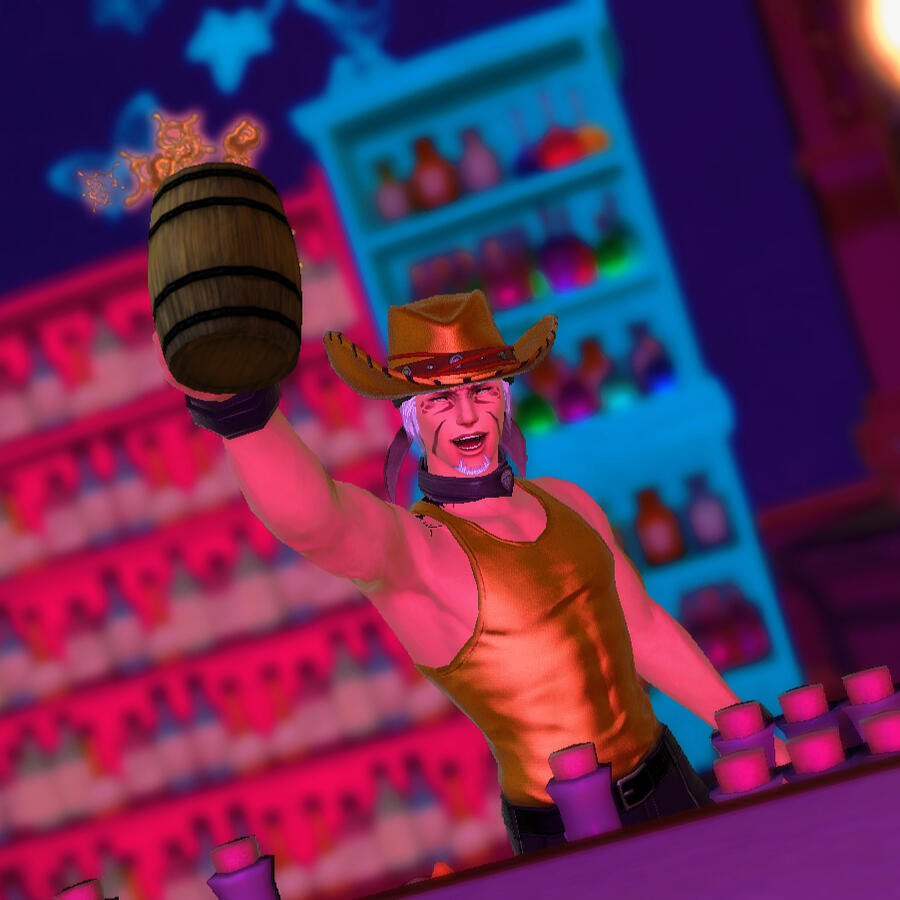 Mogan Khan grew up on the streets Ul'dah, living in the back alleys without friends or family. His first taste of belonging came from the Sultansworn, who took him off the street and trained him to be one of their own. But even then, he never really fit in. His first real understanding of family came from a meeting of happenstance, when he met Zhalar Soulsong, who would become his best friend and closest ally.When he decided to open the Rainbow Room, he wasn't looking to make his fortune. He was looking to offer a place for his friends to gather, all in the pursuit of a sense of family that he never had. And that is what the Rainbow Room is to him. The staff and regulars have become his friends and family.